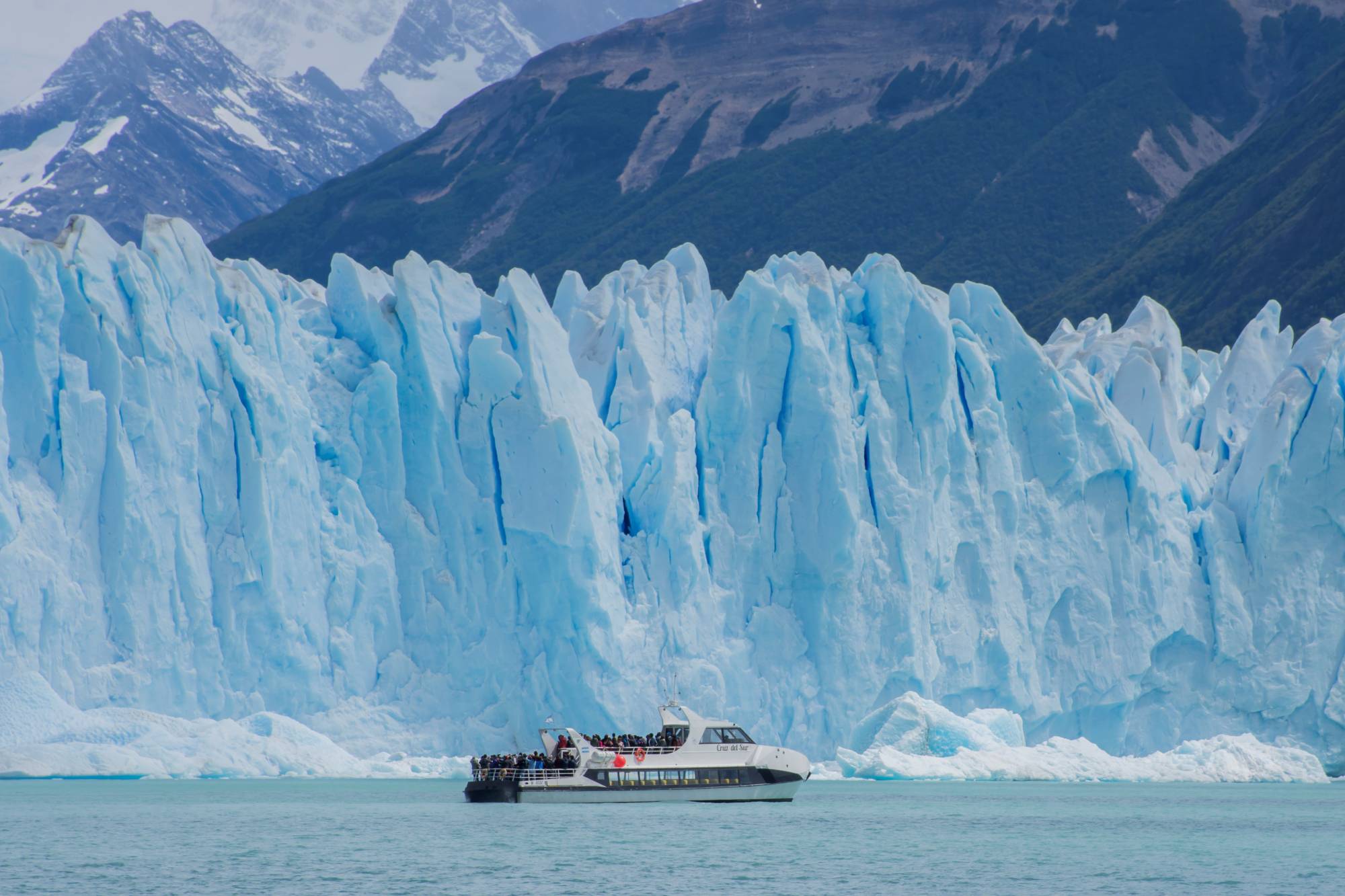 Durante la navegación de regreso, se almuerza a bordo mientras el barco se adentra en el Canal de los Témpanos frente al Glaciar Perito Moreno. Finalmente, se desembarca en Puerto Moreno para recorrer las pasarelas, pudiendo recorrerlas durante 2 horas.