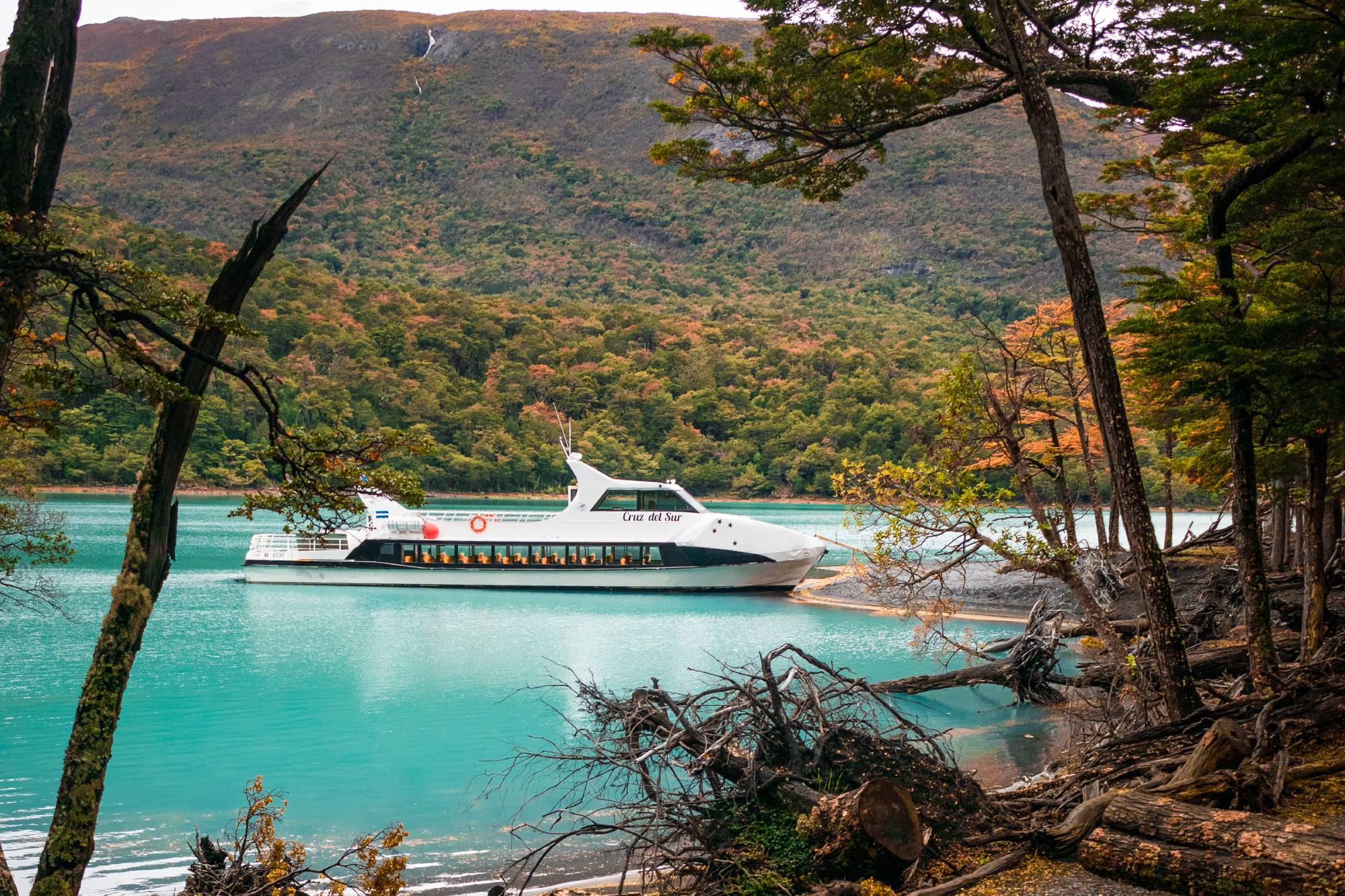 En caso de contratar la excursión con traslado desde El Calafate, lo recogeremos por su hotel a partir de las 8:00 a.m. para trasladarlo al Puerto de Punta Bandera, desde donde iniciará la navegación por el Canal de los Témpanos e ingresará al Seno Mayo del Lago Argentino. La jornada comienza navegando hacia Bahía Toro, donde se realiza una caminata interpretativa de unos 700 metros a través del bosque andino patagónico hasta una hermosa cascada rodeada de lengas y coihues. Luego se continúa hacia el Cerro Negro para realizar una caminata de 1 km bordeando un río de deshielo hasta el Glaciar Negro, un glaciar colgante que alimenta cascadas cristalinas.