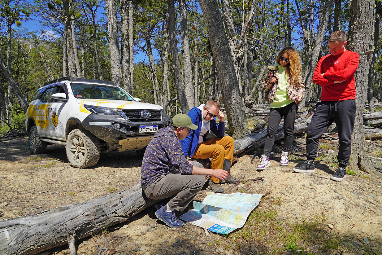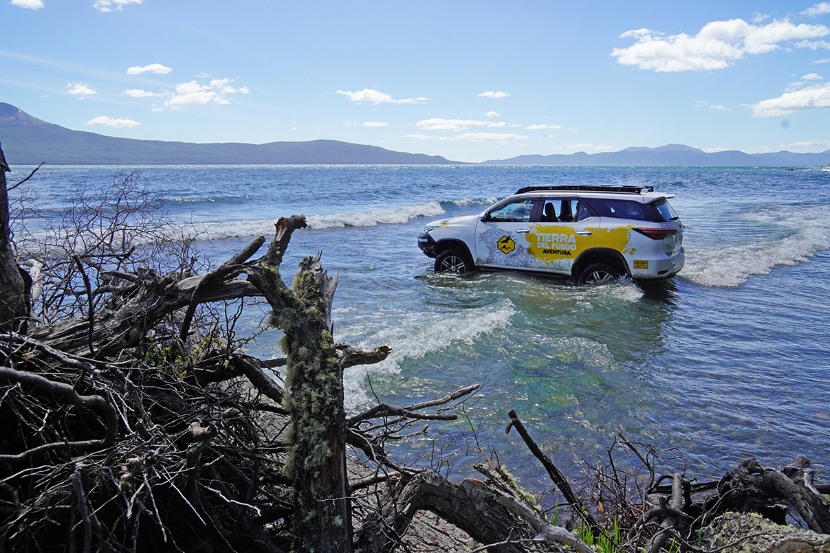 Luego de visitar este lago, la excursión continúa por senderos exclusivos para vehículos 4×4, adentrándose en el bosque y atravesando sectores utilizados antiguamente para explotaciones forestales. Este recorrido finaliza en la costa del Lago Fagnano, donde se puede observar la falla de Magallanes y recorrer sus playas a bordo de los vehículos.