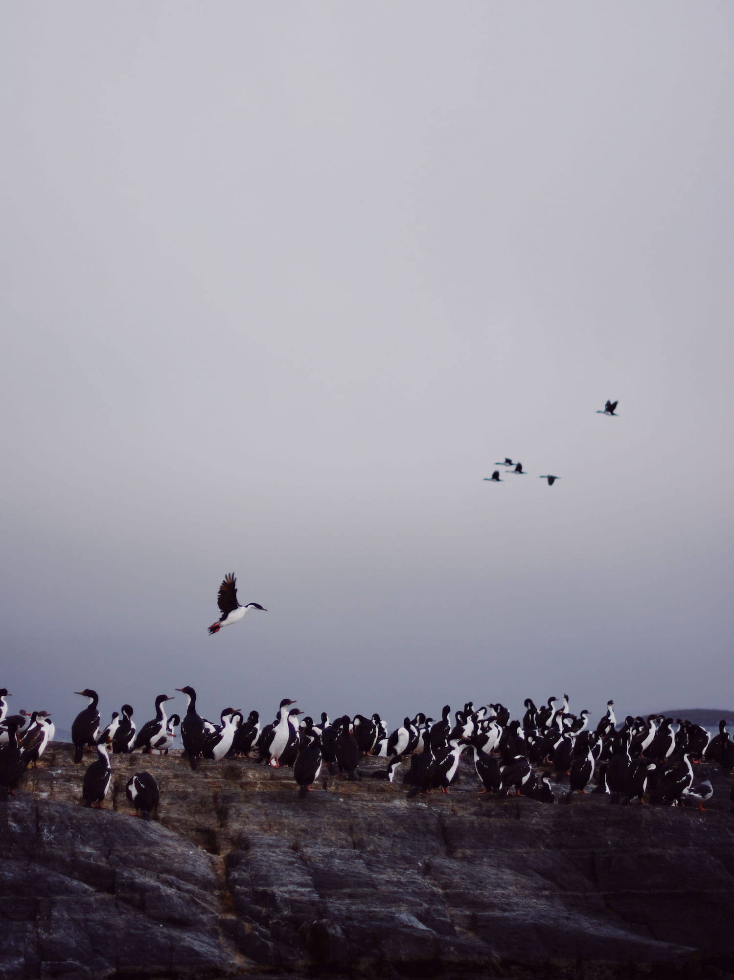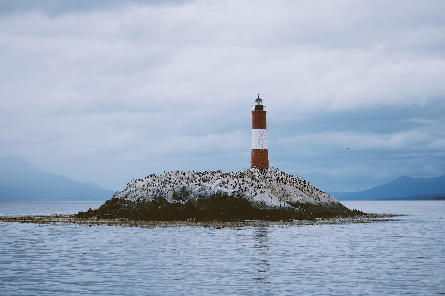 La navegación prosigue hasta el icónico Faro Les Eclaireurs, uno de los grandes símbolos del Fin del Mundo. En este sector se observan cormoranes imperiales y roqueros, mientras el guía comparte relatos históricos, entre ellos la historia del naufragio del SS Monte Cervantes.
